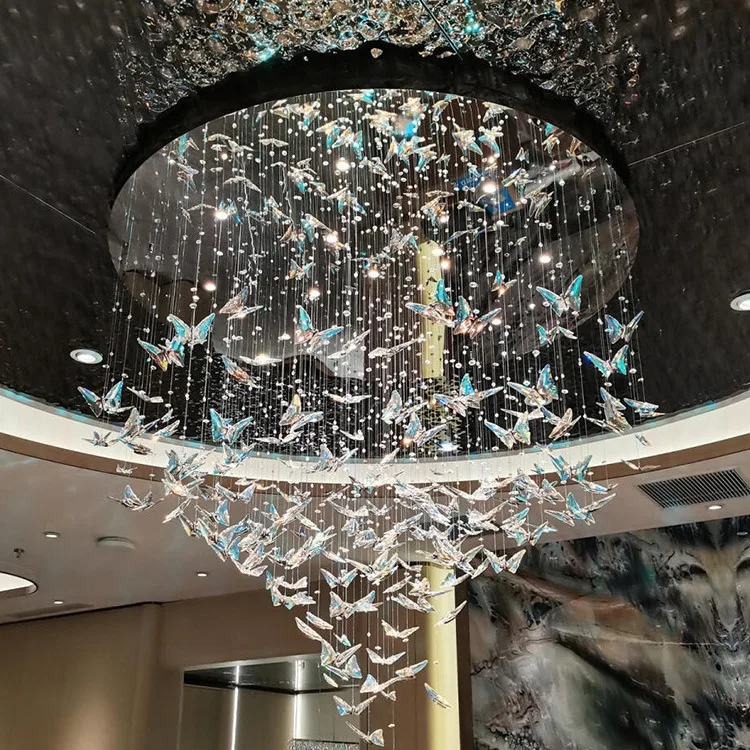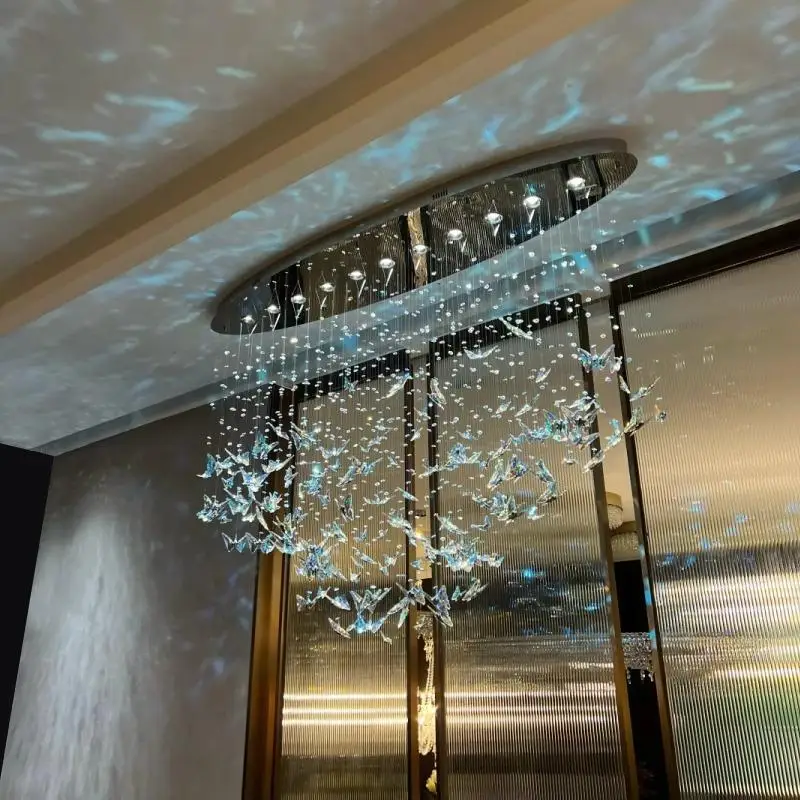 Living Room Hanging Lamp Decor Luxury Modern butterfly Shape Led Crystal Chandelier Light for High Ceilings